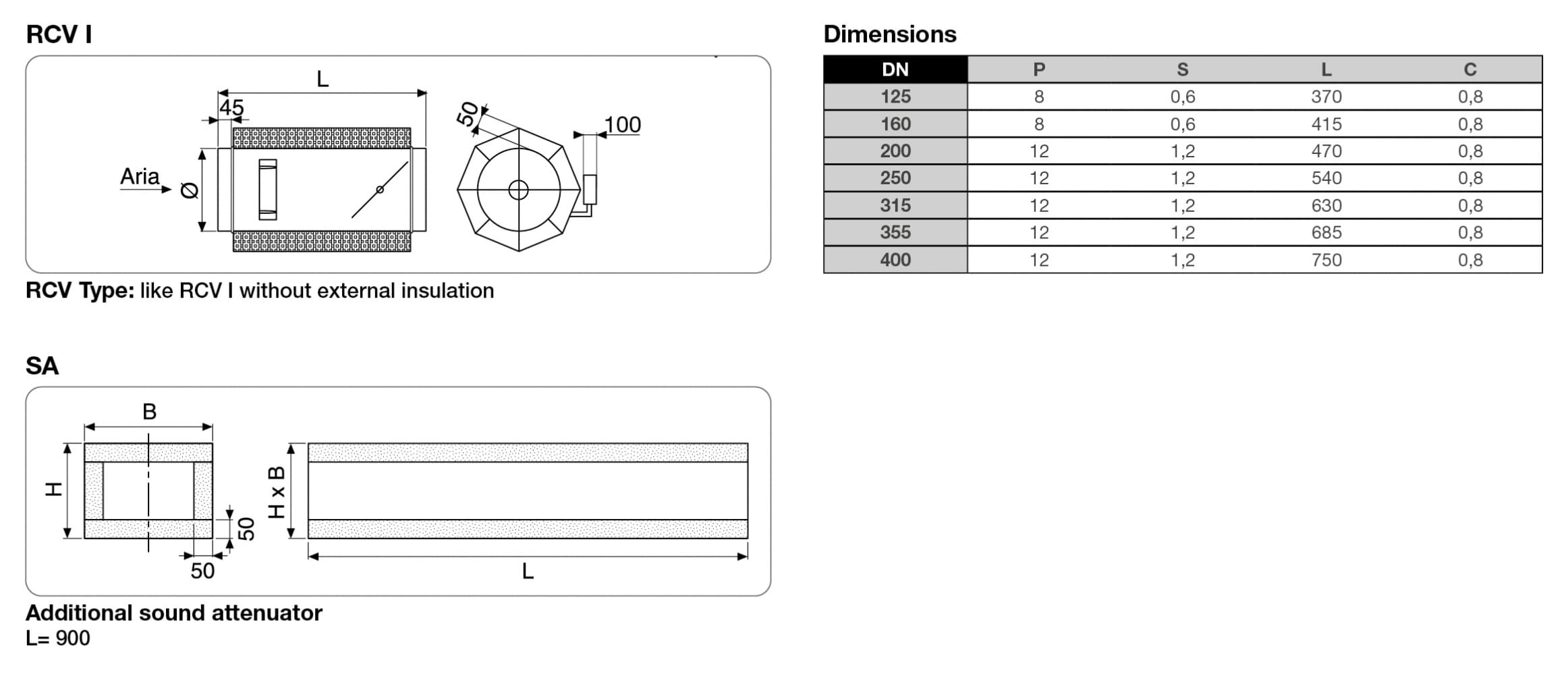 SA: additional sound attenuator L = 900 mm