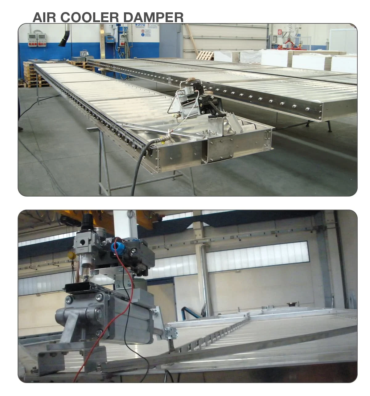 In situazioni particolari le serrande possono essere installate su specifiche macchine per il trattamento termico dell’aria, sia per la regolazione che per l’intercettazione. Europair soddisfa l’esigenza di serrande di grandi dimensioni, anche oltre 10 m, per installazioni su air-cooler e vaporizzatori. Grazie alla nostra esperienza pluri-decennale equipaggiamo le serrande con gruppi pneumatici a richiesta del cliente e delle specifiche del progetto.